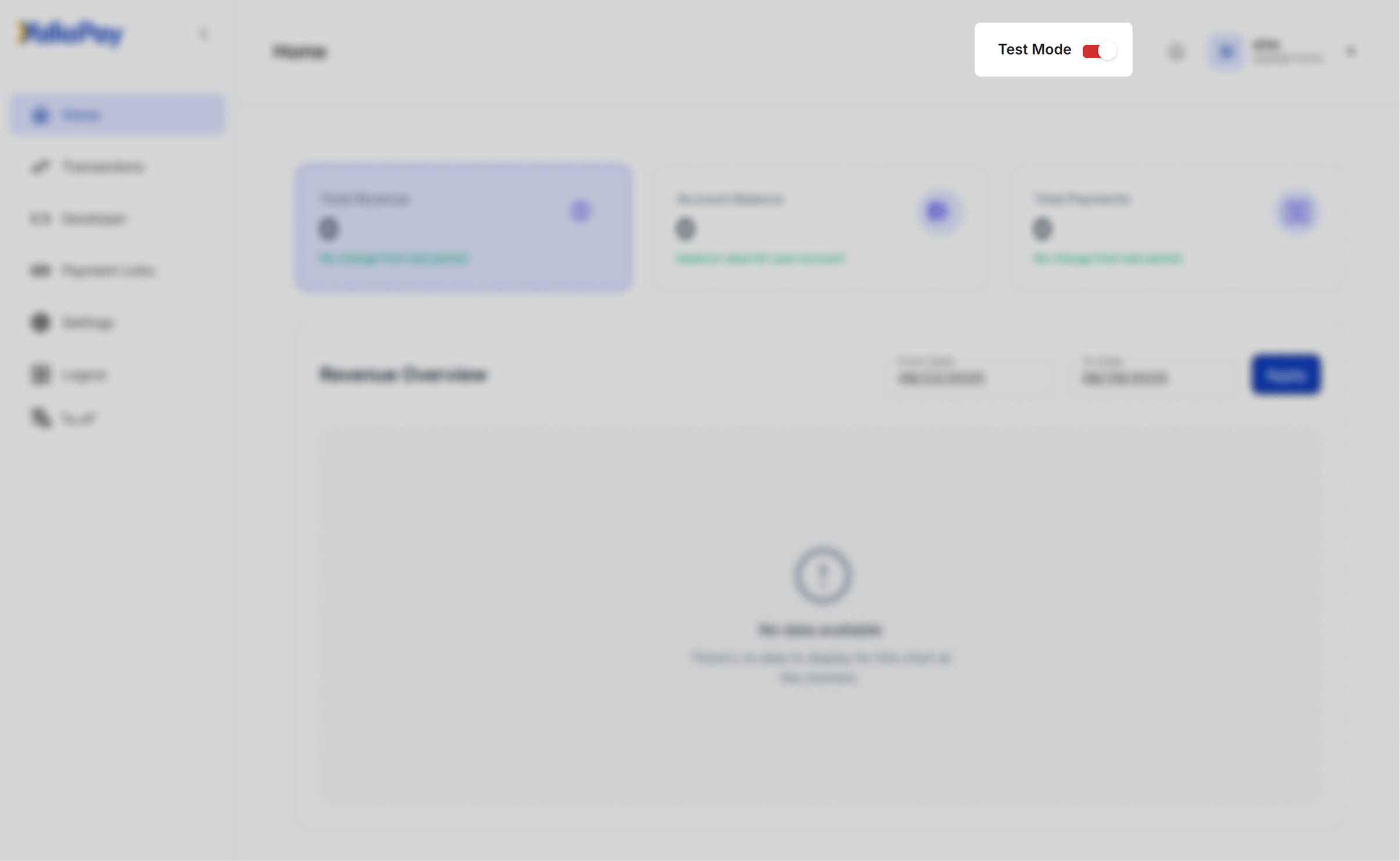Newly created accounts will find the toggle set in the "Test Mode" state by default and will be unable to switch to "Live Mode". This is because to switch to "Live Mode" you must first verify your business with us by providing the required documents in the Settings section under the Compliance tab.